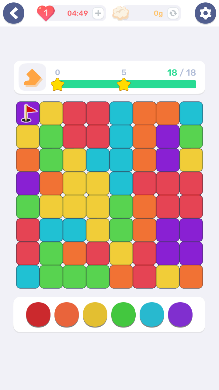 这是一款让你沉浸在奇妙颜色世界中的休闲益智游戏,它能带给你既烧脑又放松的独特体验。你需要根据关卡给出的色彩组合,通过翻转色块来改变颜色,最终将整个区域合并成统一色彩。每一步操作都会影响周围色块,非常考验你的策略思维,完成关卡消耗的步数越少,获得的评分就越高哦。