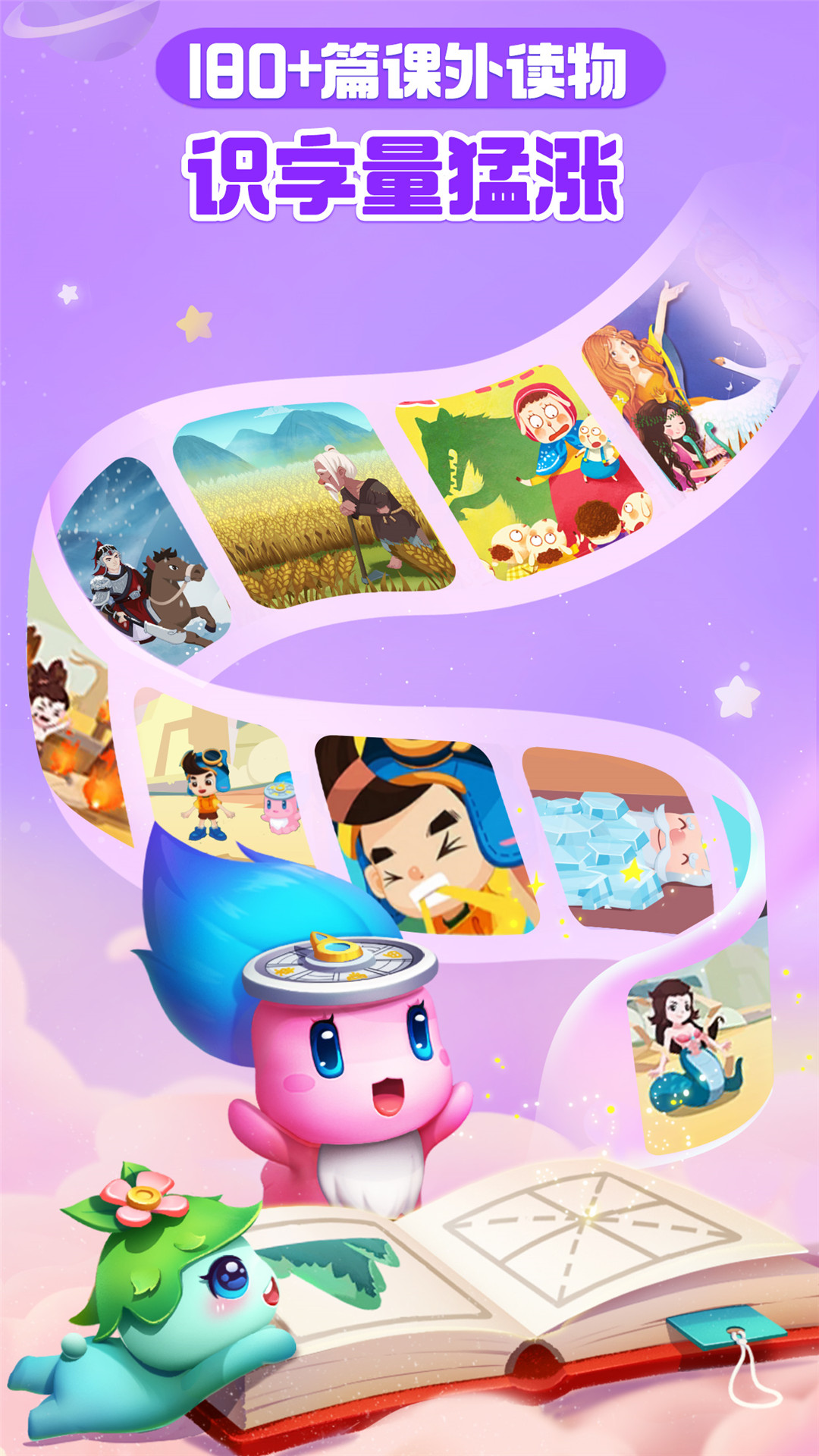 亮点体现在多感官联动设计:语音上,专业配音覆盖标准发音与词组跟读;视觉上,采用高饱和色彩与卡通角色(如奇奇妙妙)吸引注意力;操作上,通过拖拽组词、点击跟读等动作强化肌肉记忆。例如听音选字修城墙游戏中,孩子需根据发音选择正确汉字修复城墙,将抽象字形转化为具象任务。180篇分级读物和75首古诗儿歌均支持动画播放,实现看-听-读立体输入。