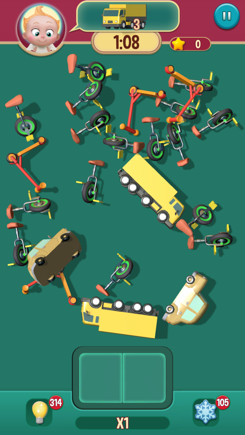 它最大的优点就是懂玩家:没强制广告(看完广告才能通关?不存!),关卡卡顿时可以用积累的金币换提示。对新手超友好——前10关自带慢速引导,爷爷奶奶也能轻松上手;而对硬核玩家来说,后期需要结合色彩辨识、形状联想等技巧的关卡绝对够烧脑。最棒的是支持离线游玩,地铁上没信号?照样能玩!每天登录送的限定道具,连佛系玩家都能愉快收集。