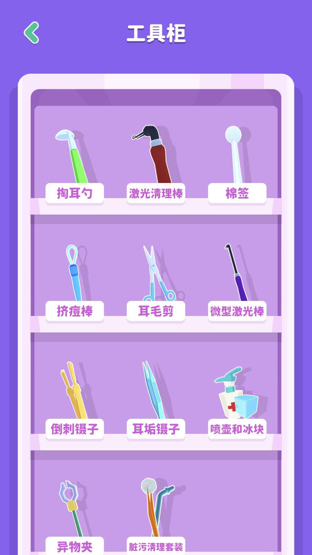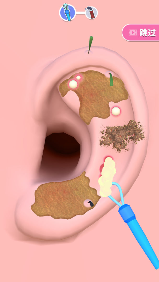 该产品最显著的特色在于其独树一帜的主题选择,将耳道清洁这一小众领域作为核心内容,区别于常规模拟类应用。工具系统设计颇具深度,包含耳勺、激光清理棒、棉签、挤痘棒、吸痘针、倒刺镊子等十余种专业器械,每种工具对应特定类型的清洁需求,形成了策略性搭配空间。视角设计采用第一人称模式,配合精细的耳道内部结构展示,创造了强烈的临场感。关卡内容设计注重变化性,每项任务中污垢分布形态与清除难度均经过特别配置,避免操作过程陷入重复枯燥。操作逻辑贴合现实认知,无需复杂学习即可掌握基本技巧,兼顾专业性与可及性。