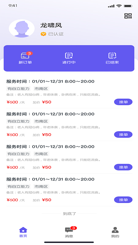 打开这个小助手,你会发现它的界面设计特别清爽,所有功能都一目了然,用起来非常顺手。护理人员完成实名认证后,就能开始接单啦!平台上的订单信息非常透明,工作内容、服务时间和具体地址都写得清清楚楚,让你能够提前做好安排。最棒的是,它还提供了智能排班功能,能帮你合理规划工作时间,避免手忙脚乱。对于需要护理服务的家庭来说,这里聚集了大量经验丰富的护理人员,包括家庭医生、护士和护工,他们可以利用碎片化时间提供专业服务,比如心理疏导、健康监测或者临终关怀等。