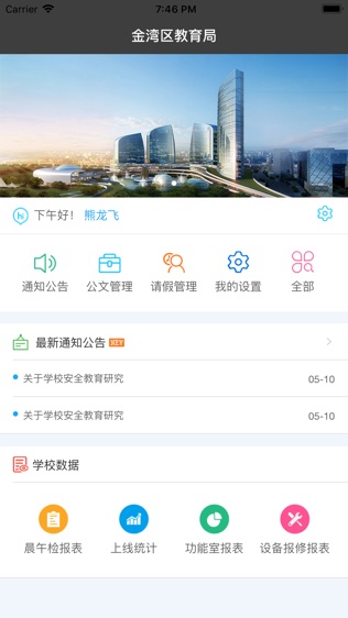 特色功能主要集中在三个方面:首先是活的数据看板,所有统计报表都支持按日、周、月自定义筛选,还能导出Excel进一步分析。其次是深度定制的流程引擎,像公文流转可以按照各校实际架构配置审批链条。最后是移动化协同能力,无论是教室巡查发现设备故障,还是领导在外审批紧急公文,用手机就能完成全套操作。采用云计算技术确保数据实时同步,在教育局端更新的政策文件,各校管理员登录后立即就能看到最新版本。通知公告中心可以对各种通知公告信息进行全面阅读查看,公文管理中心将各种公文内容集中管理,晨午检报表通过线形图直观统计展示,功能室报表提供学校的空间使用情况,设备报修报表实时统计展示学校设施的报修数据。