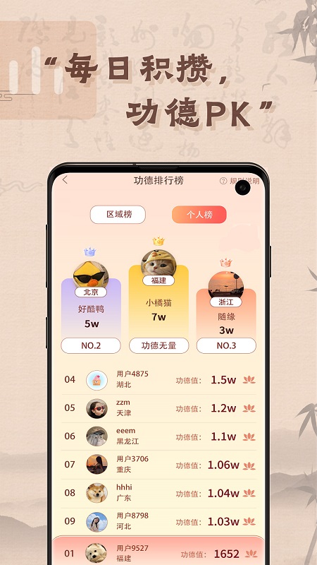 这款软件的魔力在于它强大的解压效果。当压力袭来或心烦意乱时,专注敲击木鱼的动作配合着治愈的配乐,能有效帮你转移注意力、释放焦虑,堪称随身的解压神器。它巧妙地用功德、好运等正向反馈,将简单的敲击转化为消除烦恼、积累正能量的有趣过程。功德PK和排行榜功能则为这份宁静增添了一丝轻社交的趣味,你可以和好友分享这份独特的放松时光。操作设计极其简单直观,无论你是否有冥想经验,都能立刻上手,沉浸其中。