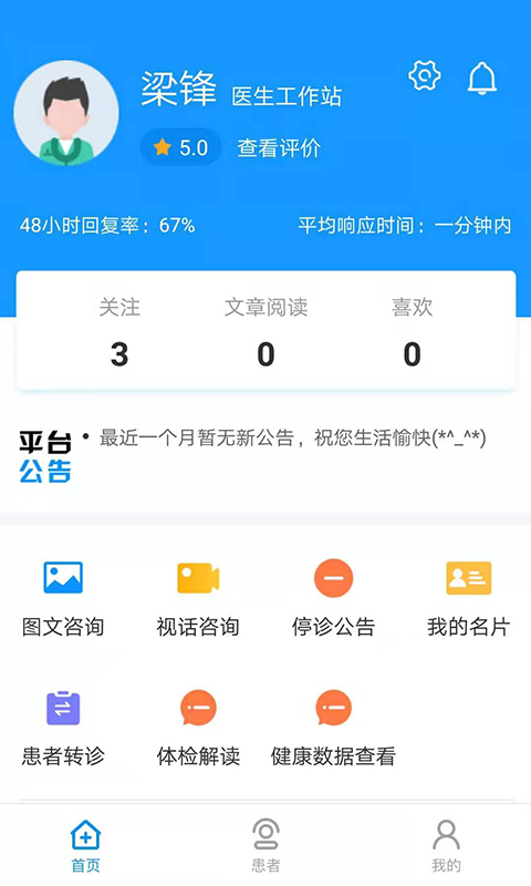 最让人眼前一亮的是智能统计回复率功能,在指定时间段内自动计算回复病患的情况,让工作效率一目了然。个性化咨询设置让工作方式更加灵活,支持添加个人名片,在推广信息时可以一键发送自我介绍。人脸登录的便捷通道既安全又省心,有效避免盗号风险,再也不用担心忘记密码的烦恼。群发消息功能特别实用,重要通知一键发送,让每位病患都能及时了解最新信息。